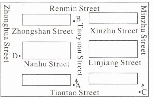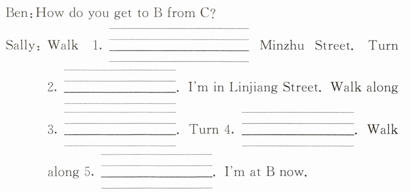 1. along 2. left 3. Linjiang Street 4. right 5. Taoyuan Street