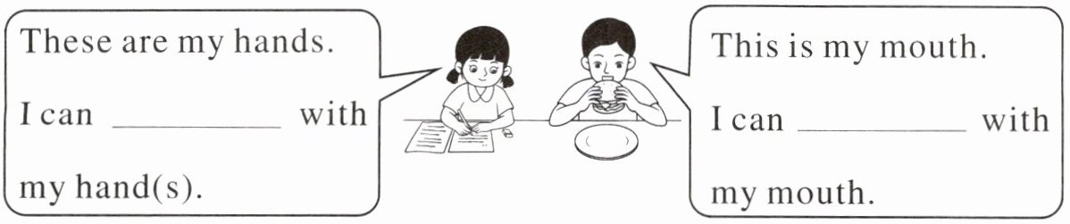 三、身体的每个部位都有其独特的功能。请你结合以上录音,将下面的对话补充完整,并说一说。