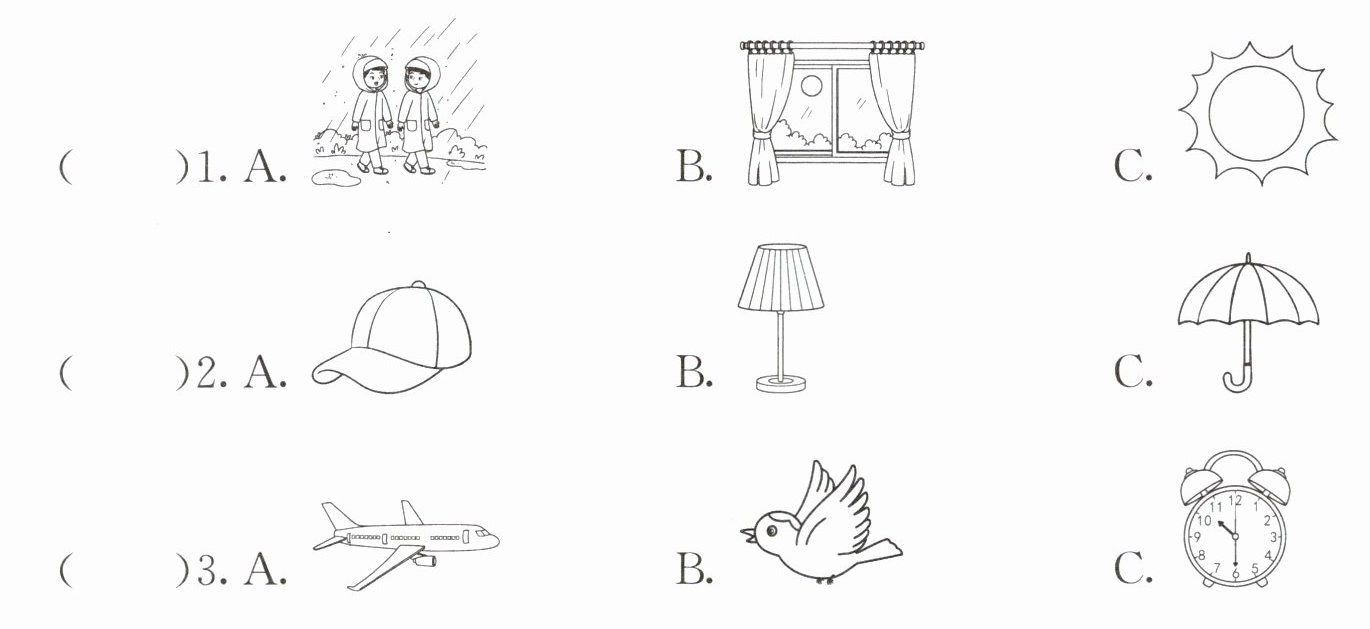 二、听句子,选出与句子内容相符的图片,并将其字母标号填在题前的括号内。每小题读两遍。