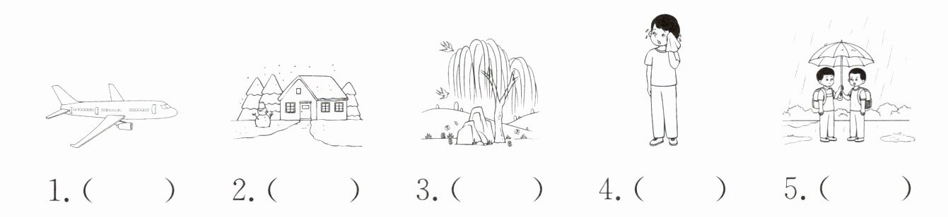 二、听句子,判断下列图片与你所听到的句子是否相符,相符的在括号内写“T”,不相符的写“F”。每小题读两遍。