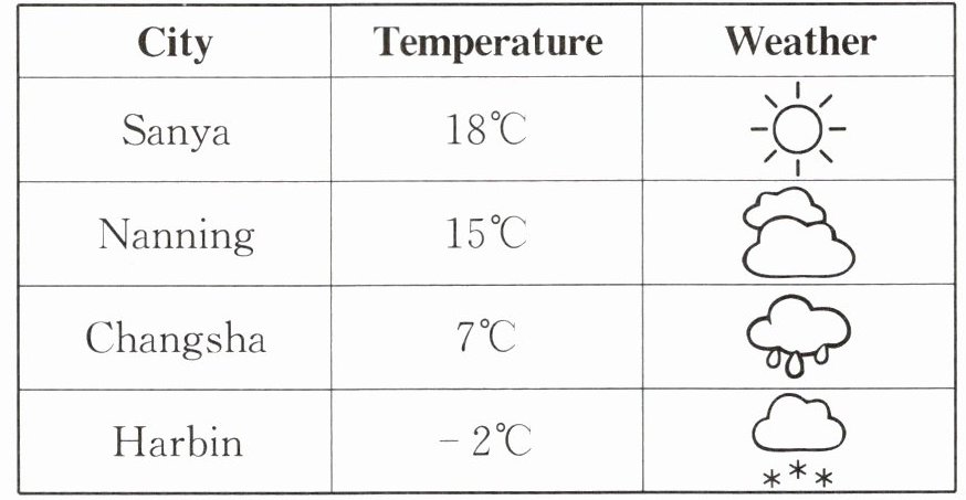 )2. It’s cloudy in ______.A. Nanning B. Changsha C. Harbin