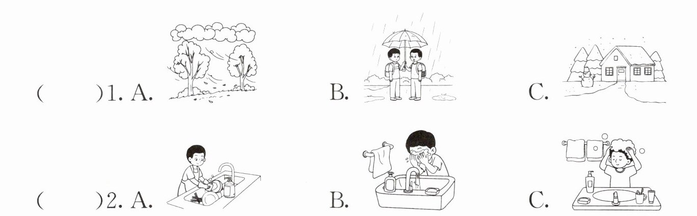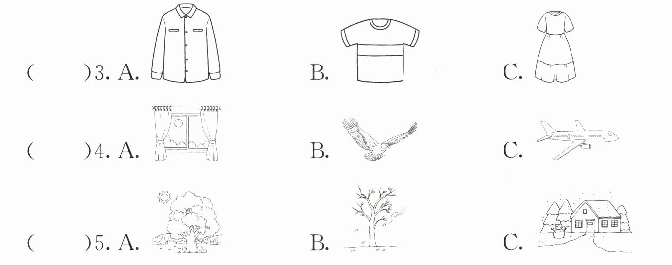 三、听对话,选出与对话内容相符的图片,并将其字母标号填在题前的括号内。每小题读两遍。