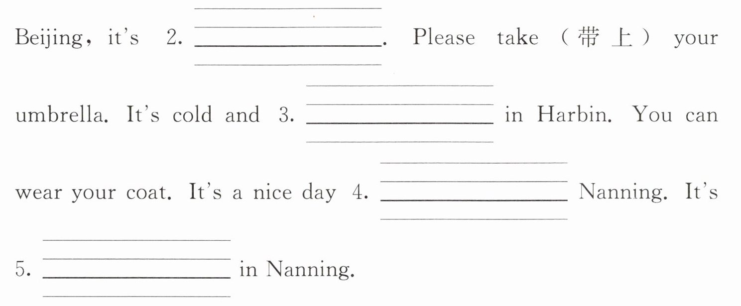 五、从方框中选择恰当的单词补全短文,并将该单词写在对应的四线三格中。