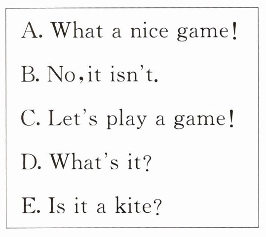 四、读对话,在方框内选择恰当的选项补全对话,并将其字母标号填在题下的横线上。