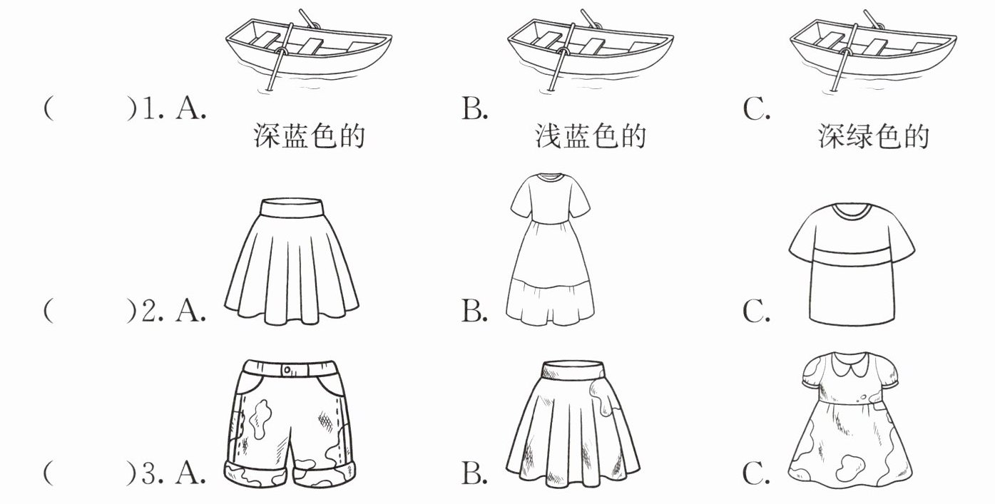 二、听句子,选出与句子内容相符的图片,并将其字母标号填在题前的括号内。每小题读两遍。