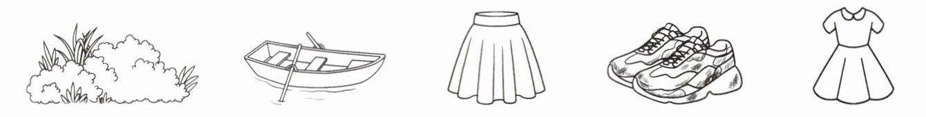 1. clean 2. dirty 3. grass 4. boat 5. yellow