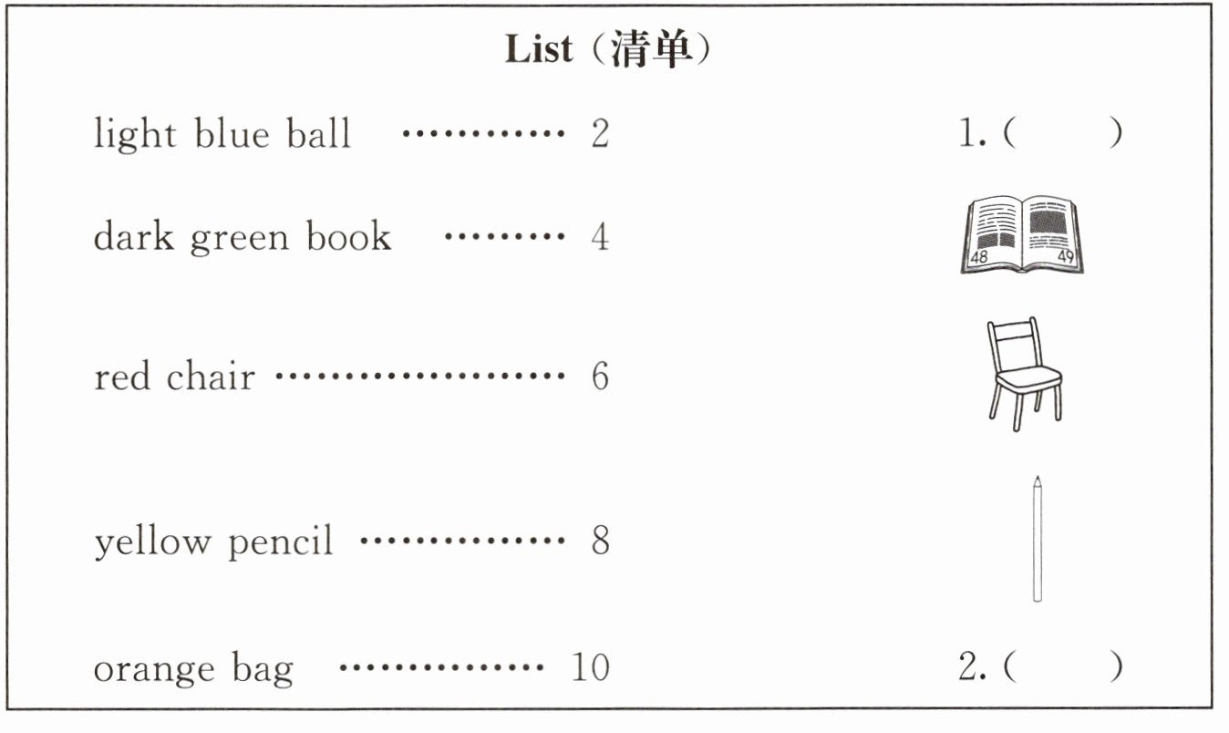 )5. We have ______ red chairs.A. 10 B. 8 C. 6