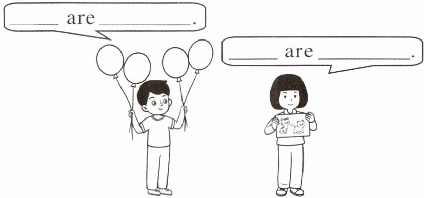 三、请你参考上面的录音,补全下面的对话,用 these 和 those 描述身边的物品吧!