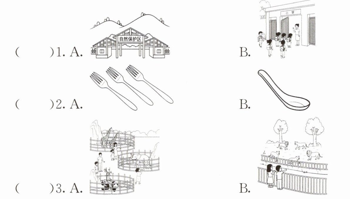 二、听句子,选出与句子内容相符的图片,并将其字母标号填在题前的括号内。每小题读两遍。