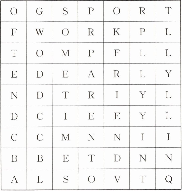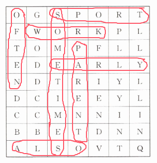 1. work 2. sport 3. early 4. also 5. sometimes 6. often 7. parent(顺序不固定)