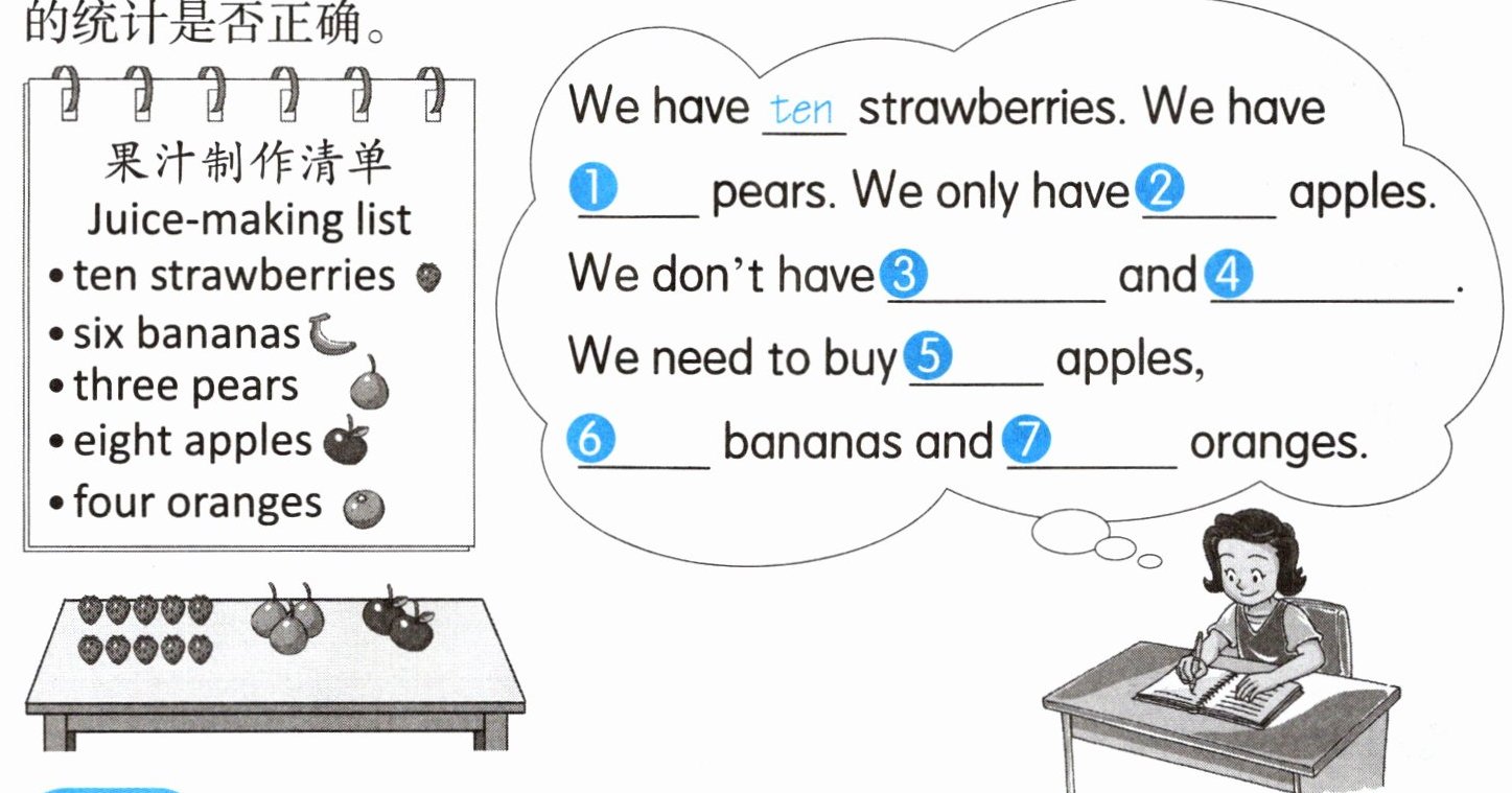 ①three ②two ③bananas ④oranges ⑤six ⑥six ⑦four