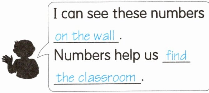 I can see these numbers on the wall. Numbers help us find the classroom.