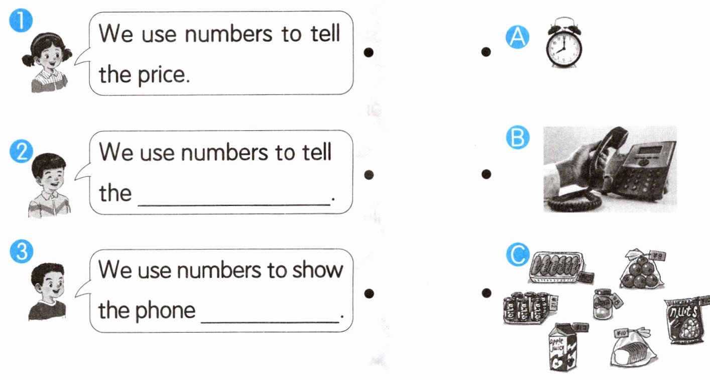 “数学文化周”庆典活动上,同学们在进行“有用的数字”分享。你能猜猜他们分享的数字都在生活中的哪些场景中吗?请先填空,再连线。