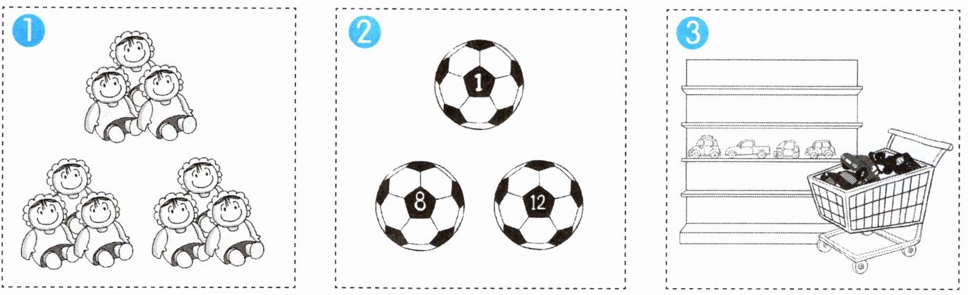2. “数学文化周”接近尾声,同学们在奖品兑换区挑选礼物。请你听一听,圈出相应的物品和数量吧!
