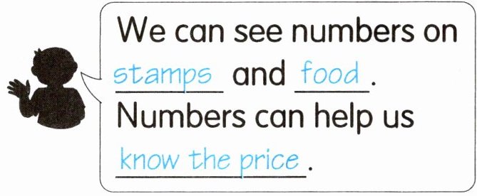 We can see numbers on stamps and food. Numbers can help us know the price.
