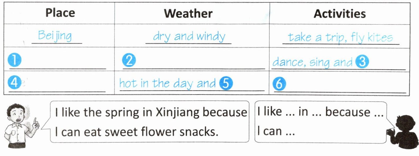查阅网络后,同学们在梳理信息,请你帮忙一起记录,并说一说你最喜欢的地方吧!