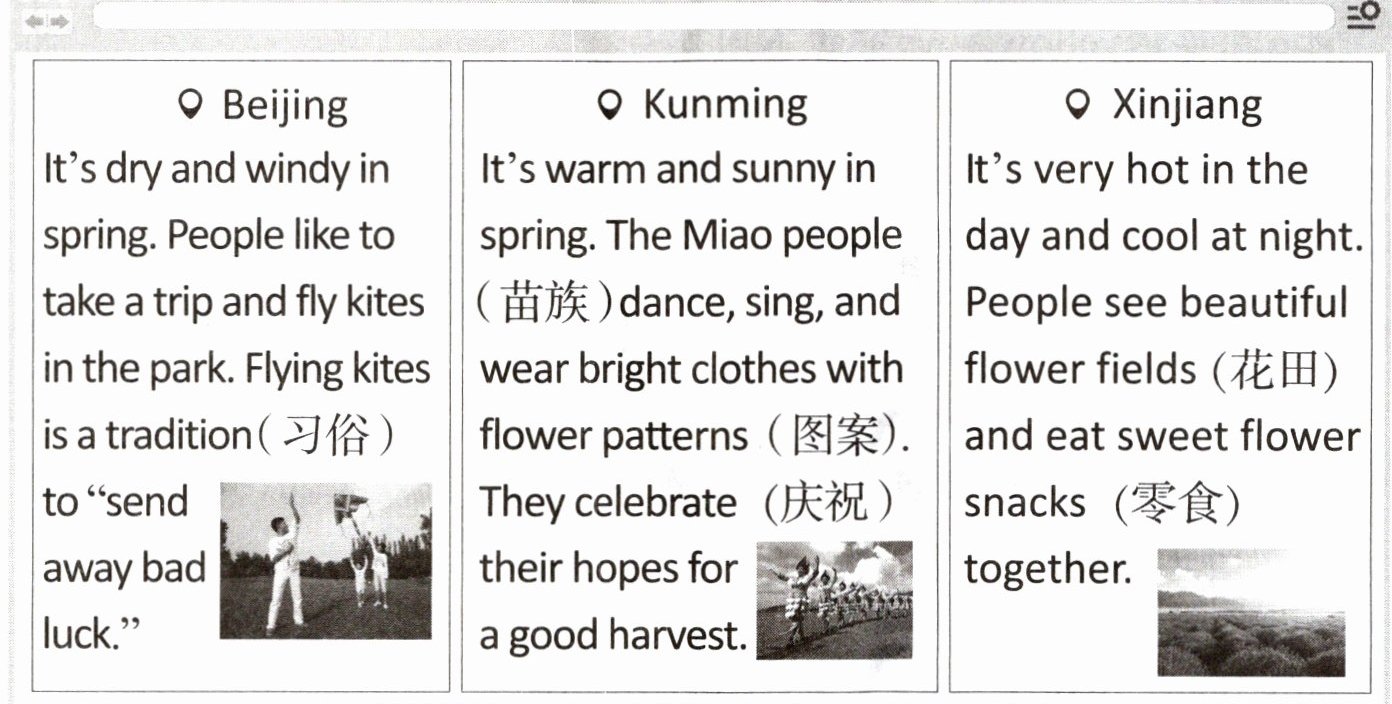 4. Xinjiang 5. cool at night 6. see beautiful flower fields, eat sweet flower snacks