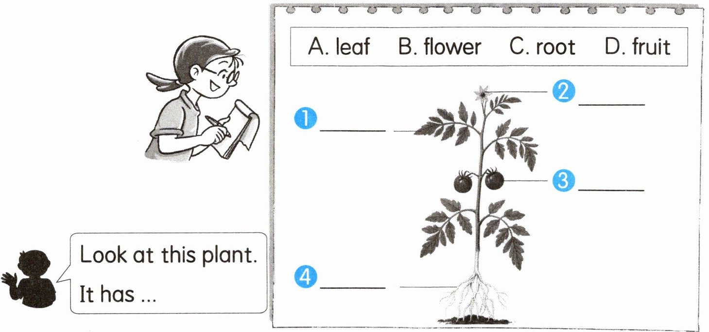)Look at this plant. It has leaves, flowers, fruit and roots.