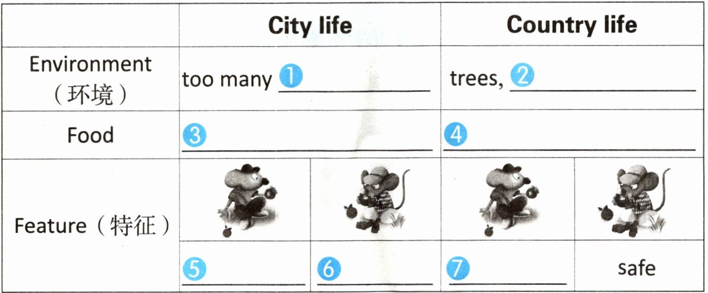同学们在研学中举行“城市生活VS乡村生活”辩论赛。请根据《伊索寓言》的经典故事“城市老鼠和乡村老鼠”,对比城乡生活的异同,为辩论赛做准备。