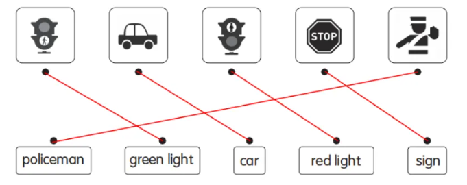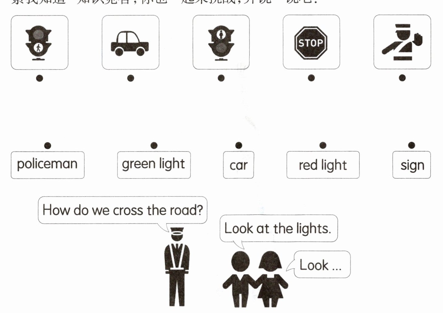(供参考) —How do we cross the road? —Look at the lights. —Look left and right.