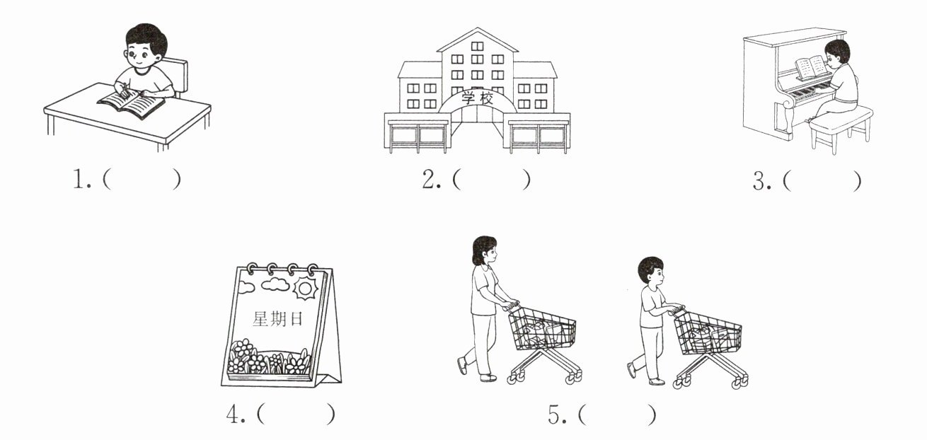 四、听短文,排顺序。你将听到一篇短文,请将下列图片按照句子出现的先后排序,并用字母A—E标出。短文读两遍。