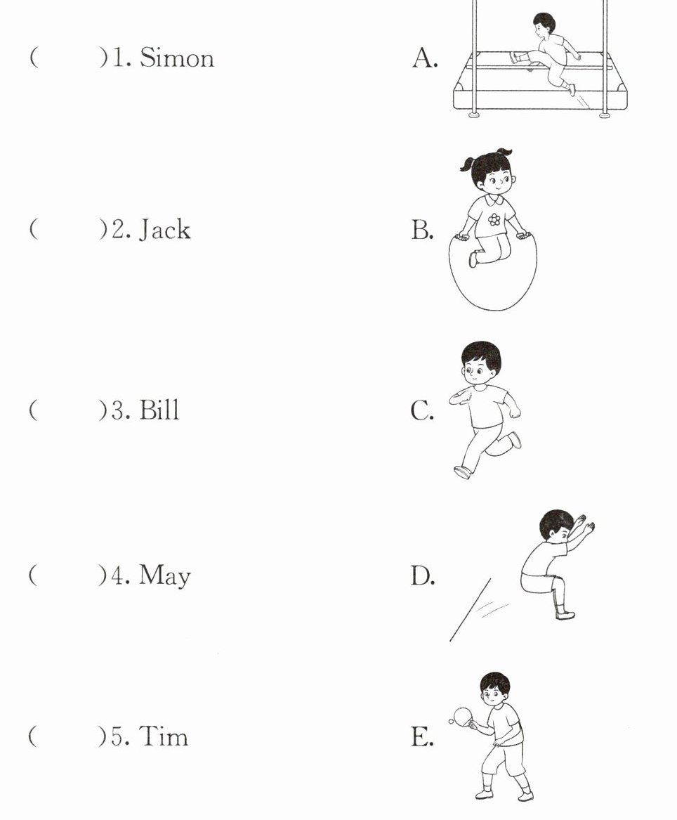 三、听音配对。请根据你所听到的短文内容,将人名和相应的图片配对。短文读两遍。