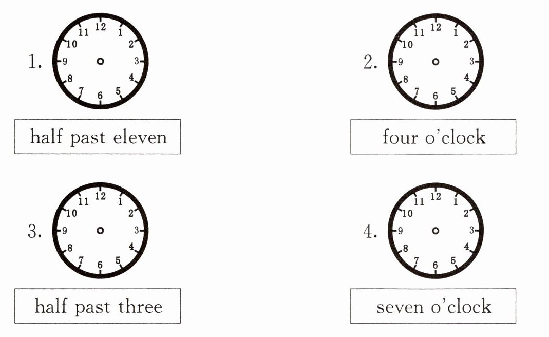 4. 时针指向7,分针指向12。