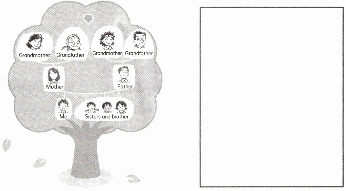 4. 你的家庭树是怎样的?请你仿照样例画一画,说一说。