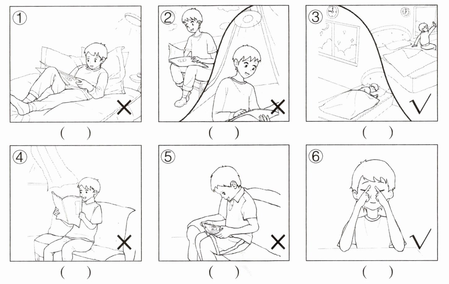 2. 请你读一读,将毛毛的护眼贴士和图片配对。