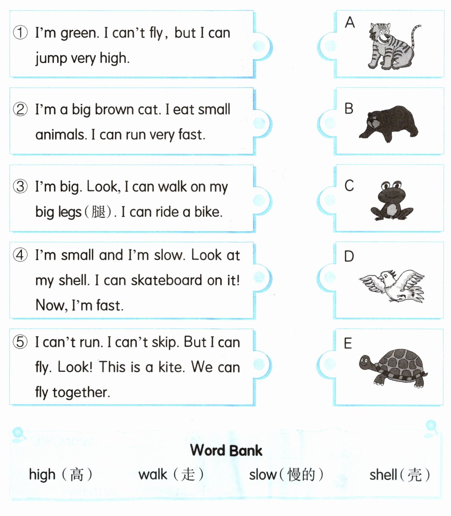 1. 森林里的动物也想参加运动会。请读一读动物的参赛宣言,思考一下它们分别是谁,将句子和动物图片用线连起来。