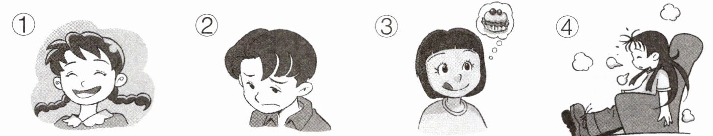 4. Feeling Club 的同学们收集了一些小朋友的图片,请你写一写,帮助他们描述图片中人物的感受吧。