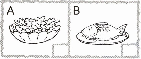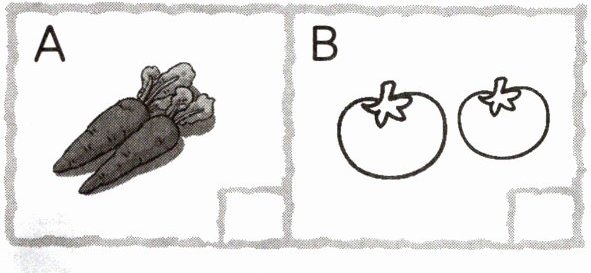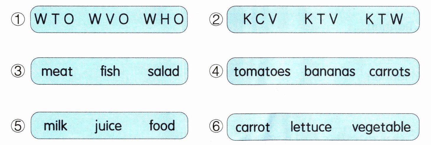 ① WHO ② KTV ③ fish ④ tomatoes ⑤ juice ⑥ carrot