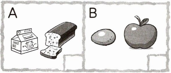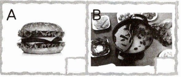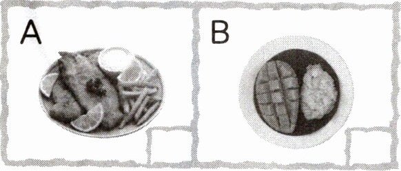2. 学校里正在举办“健康饮食周”活动,同学们都在谈论自己的食物。请你听一听,选择与所听内容相符的图片,在方框里打“√”。