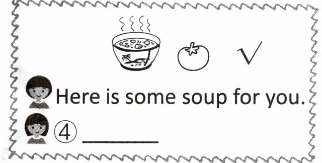 5. 同学们在谈论午餐。看图读一读,将最佳答案的编号填在横线上。