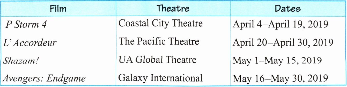4. Which film is being performed at the UA Global Theatre on May 7, 2019?