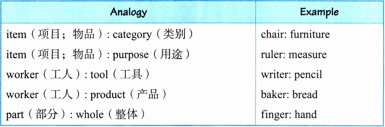 Using analogies requires you to identify relations between words. The relations can be synonyms, antonyms, etc.