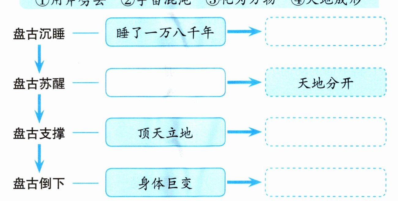 ①用斧劈去 ②宇宙混沌 ③化为万物 ④天地成形