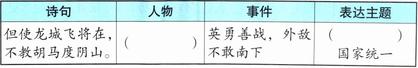 |但使龙城飞将在,不教胡马度阴山。|①|英勇善战,外敌不敢南下|C|