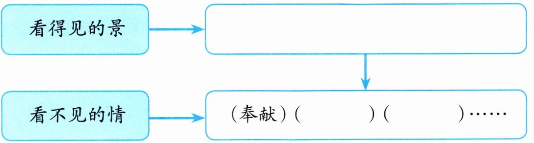 )分钟思考文章讲了一个什么故事。除了看到的画面,你还读出了哪些看不到的动人情感?试着填写文后的内容。