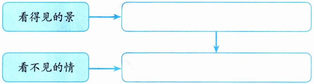 二、作者刘章在《写作〈搭石〉的前前后后》这篇文章中,写了这样一句话:“搭石上有新意,搭石上有美,搭石上有情。”表达看得见的景背后,尽是看不见的情。请你根据提示,总结梳理下面的内容