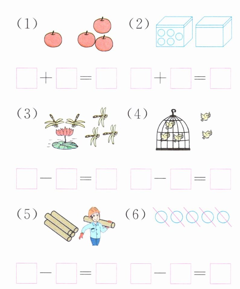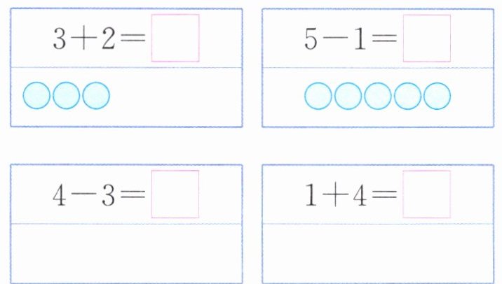 (1)1+3=4 (2)5+0=5 (3)5-3=2(4)5-2=3 (5)5-1=4 (6)5-5=0