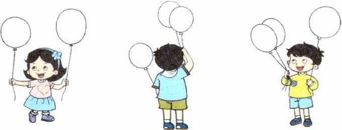 把小朋友右手中的气球涂上你喜欢的颜色。