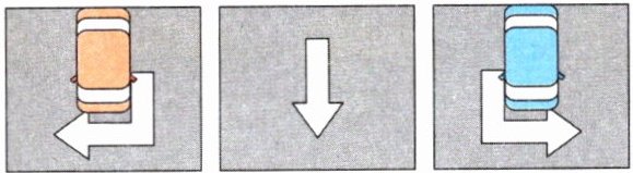 (1)圈右 (2)圈左 解析:题图中的红车和蓝车面对着我们观察者,我们要站在驾驶员的角度来思考。