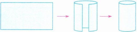 (1)如图,卷一卷,可以把一张长方形纸卷成一个圆柱。