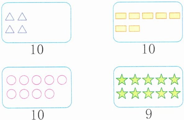 4.(数感)根据给出的数把多的图形划去,少的图形补上。