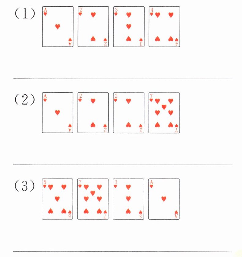 5. (创新应用)经过加法或减法运算,用下列牌面上的数算出 10。(A 表示 1,每个数都要用且只能用一次)