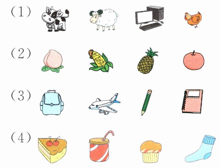 5. 把下面每行中不同类的圈出来。