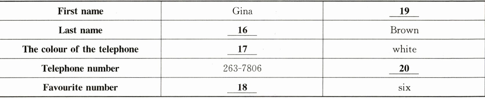 16. Smith 17. red 18. eight 19. Tom 20. 354-6675