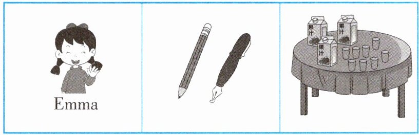 Hello! My name is Emma Green. My favourite colour is blue. This is my blue pen and that is my blue pencil. Oh! This is my telephone and it is black. This is a table. There are boxes of juice and paper cups on it.