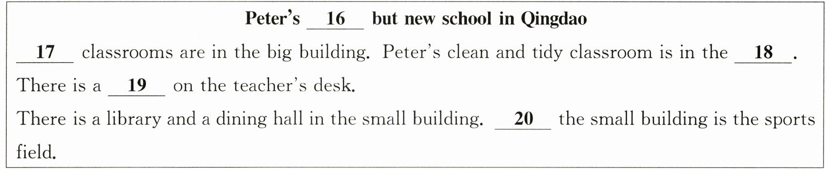 B: It's large and clean. There are 46 desks in my new classroom. And the teacher's desk is in front of the blackboard.